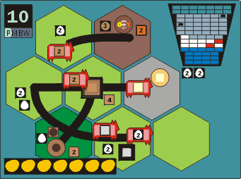 Score: 360 (2 shares, 1 coin, 2 gold, 6 wonder rows, and 7 superfluous geese)