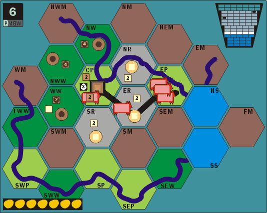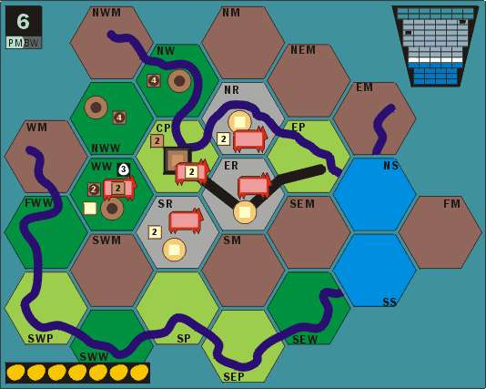 Score: 800 (6 shares, 1 coin, 2 gold, 2 wonder rows)